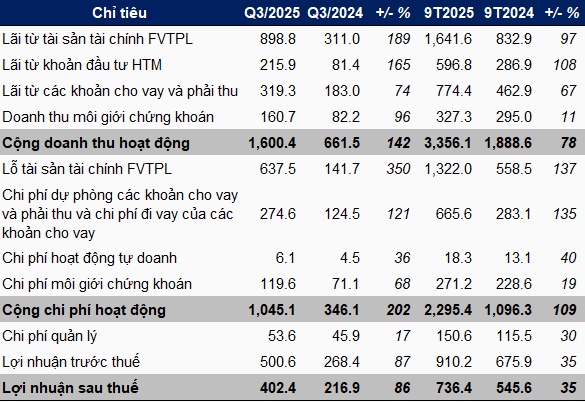 Kết quả kinh doanh quý 3 và lũy kế 9 tháng năm 2025 của ACBS