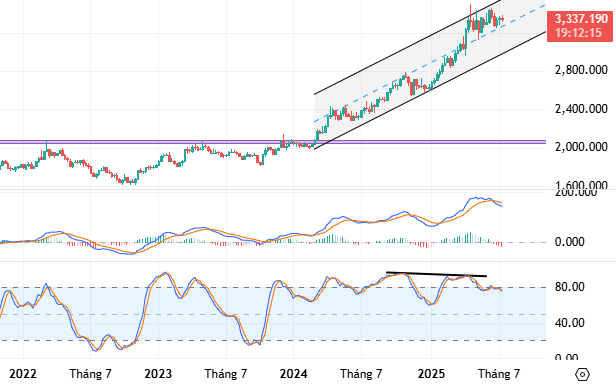 Nhà đầu tư cần lưu ý diễn biến giá vàng trong thời gian tới ở cạnh dưới của kênh tăng giá (tương đương vùng 3,150-3,170). Nếu giá phá vỡ dưới mức này thì rủi ro trong trung hạn sẽ gia tăng.