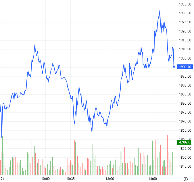 Trong phiên giao dịch ngày 21/10/2025, hợp đồng 41I1FB000 khởi đầu với diễn biến giằng co kéo dài với lợi thế có phần nghiêng về phe Long trong suốt phiên sáng. Bước sang phiên chiều, bên mua tiếp tục chiếm ưu thế giúp hợp đồng tiếp tục bứt phá đến cuối phiên và đóng cửa tại mức 1,900.2 điểm, tăng hơn 39 điểm.