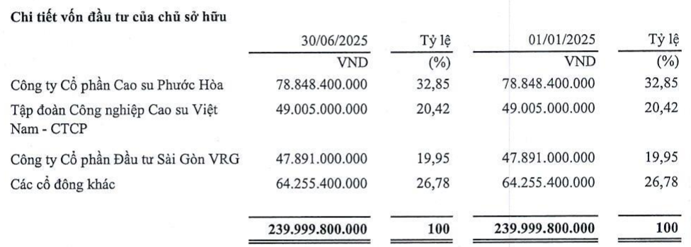 Tính đến cuối tháng 6, NTC có ba cổ đông lớn gồm CTCP Cao su Phước Hòa (HOSE: PHR), Tập đoàn Công nghiệp Cao su Việt Nam - CTCP (HOSE: GVR) và CTCP Đầu tư Sài Gòn VRG (HOSE: SIP) nắm giữ hơn 73% vốn.