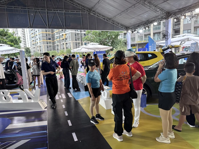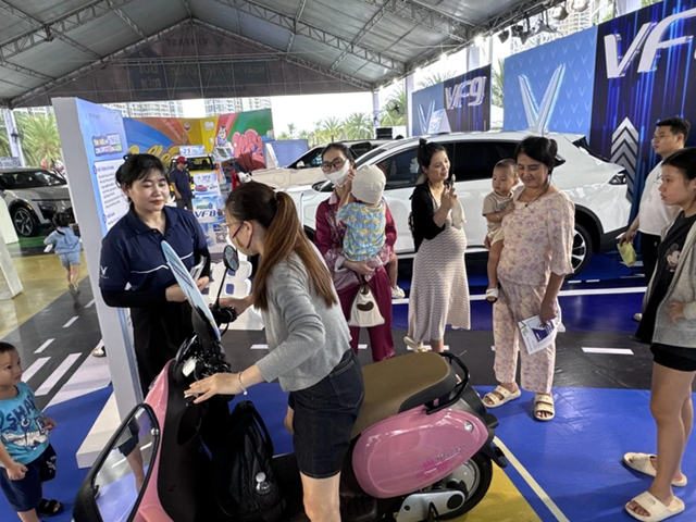Tại đây, khách mua xe máy điện sẽ được hỗ trợ 10% giá xe, 100% lệ phí trước bạ, tặng 1 triệu đồng khi đặt cọc. Khách chọn mua ô tô được giảm giá 4% từ chương trình "Mãnh liệt tinh thần Việt Nam – Vì tương lai xanh" và hỗ trợ thêm đến 100 triệu đồng cho chương trình "Thu xăng đổi điện".