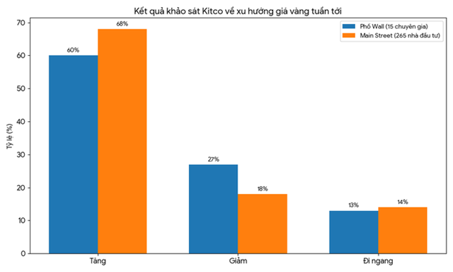Tuy nhiên, kết quả khảo sát của Kitco về xu hướng tuần tới cho thấy cả giới phân tích lẫn nhà đầu tư vẫn tin tưởng giá vàng sẽ tăng trở lại.
