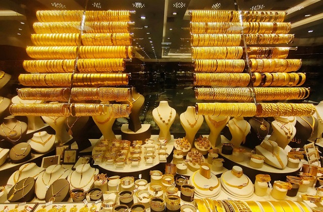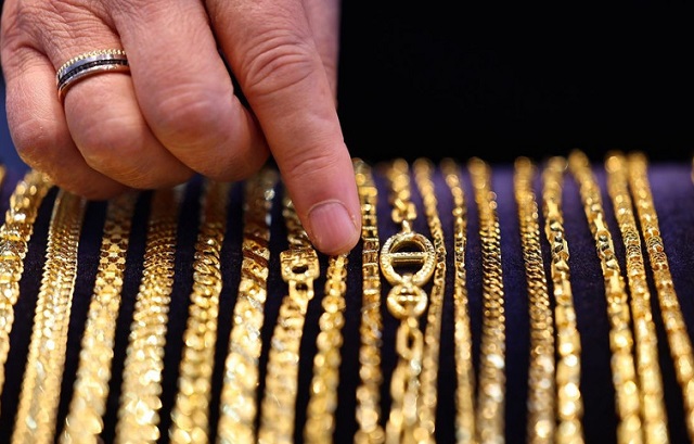 Trang sức vàng được bày bán tại cửa hàng ở Istanbul, Thổ Nhĩ Kỳ. (Nguồn: THX/TTXVN)
