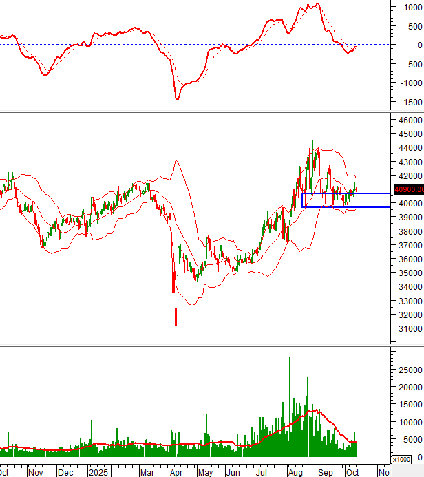Giá đã test thành công đáy cũ tháng 09/2025 (tương đương vùng 39,600-40,600).