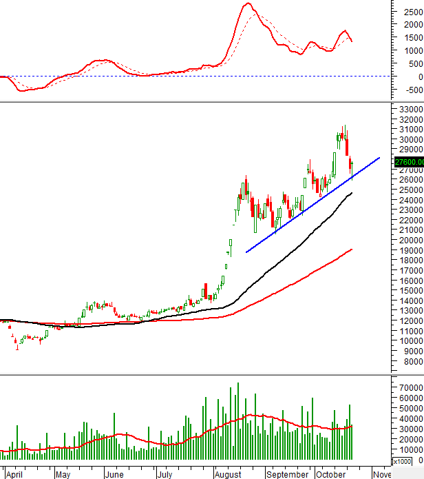Đường trendline ngắn hạn (tương đương vùng 26,000-27,000) đã hỗ trợ rất tốt cho giá trong đợt điều chỉnh vừa qua.