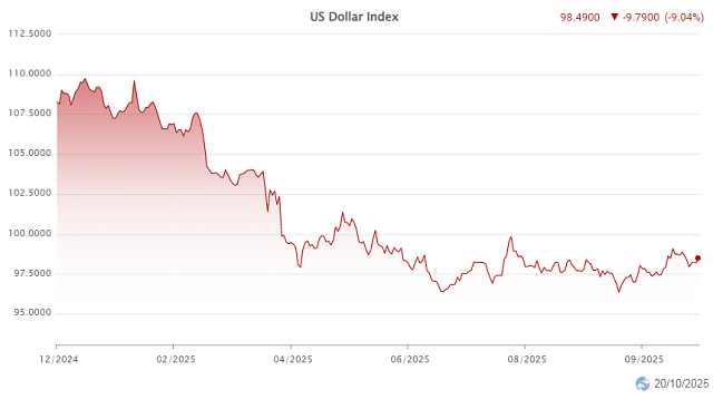 Diễn biến DXY từ đầu năm 2025 đến ngày 20/10