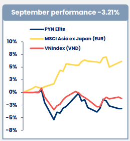 Sau chuỗi 4 tháng ghi nhận tăng trưởng dương, hiệu suất của quỹ đầu tư đến từ Phần Lan - PYN Elite Fund quay đầu giảm trong tháng 9 khi thị trường chứng khoán Việt Nam điều chỉnh sau giai đoạn tăng mạnh.