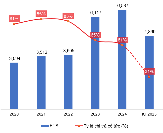 Bước sang năm 2025, doanh nghiệp tiếp tục đặt kế hoạch trả cổ tức với tỷ lệ tối thiểu là 15% tương tự như năm trước. Tuy nhiên, cần lưu ý rằng QNS thường xuyên vượt kế hoạch cổ tức nhờ kết quả kinh doanh tích cực, do đó mức chi trả thực tế có thể sẽ cao hơn nếu lợi nhuận duy trì ổn định như những năm gần đây.