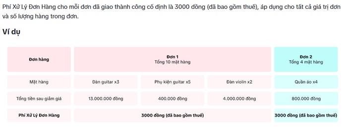 TikTok Shop ví dụ cách tính phí xử lý đơn hàng